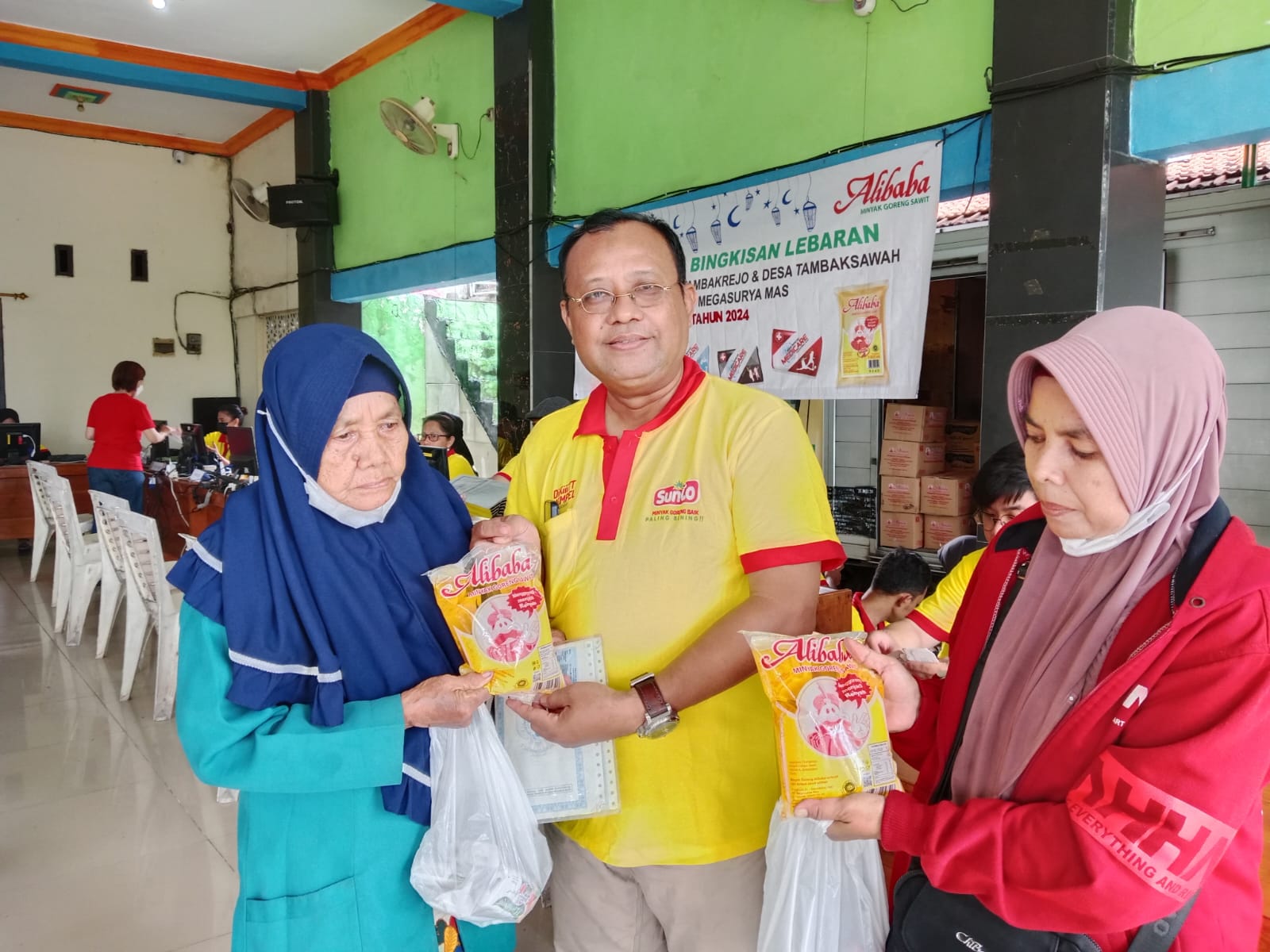 Produsen sabun dan minyak goreng ini membagikan ribuan bingkisan lebaran untuk warga Desa Tambak Sawah dan Tambak Rejo Kecamatan Waru, Senin (8/4/2024).