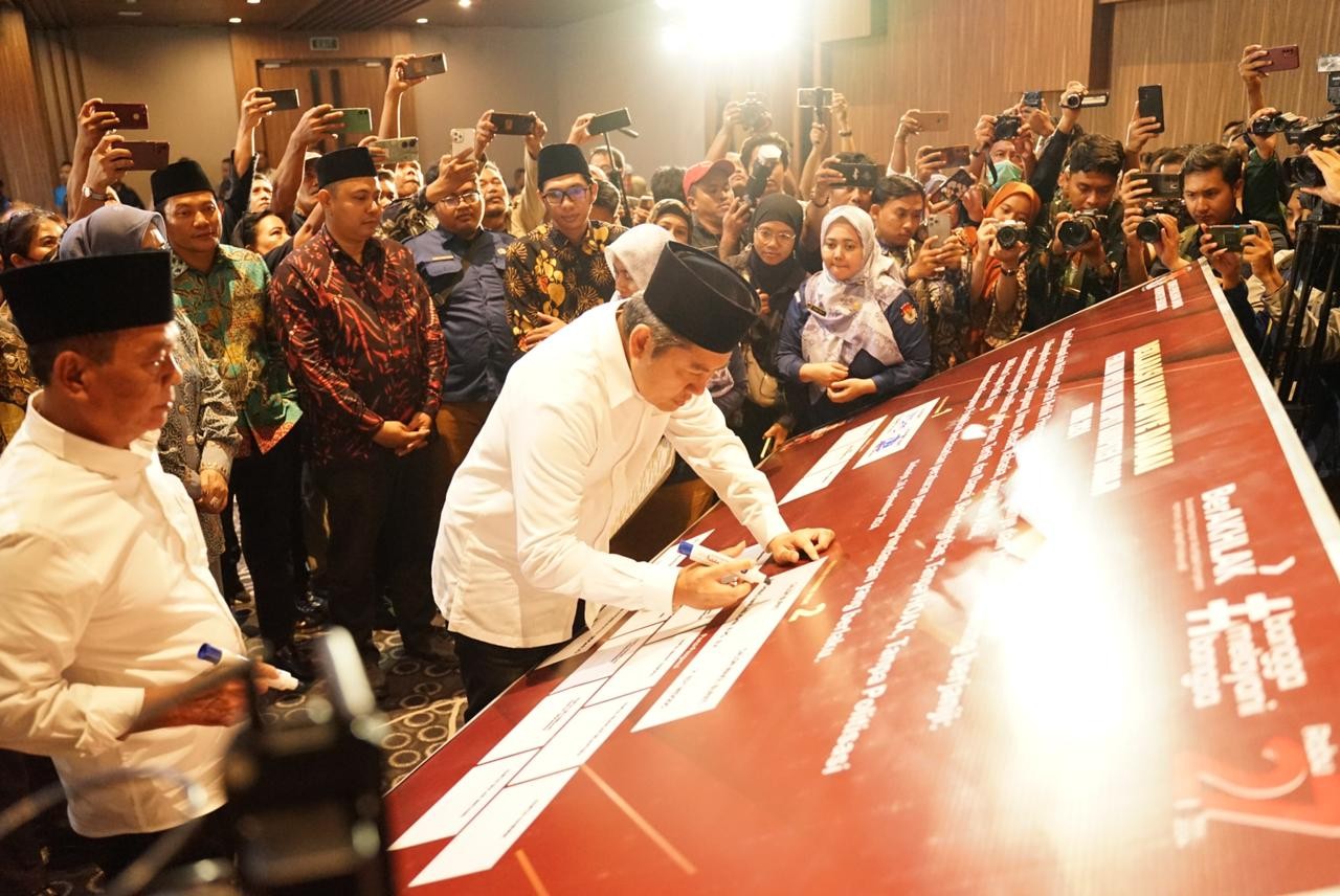 SIDOARJO, Dinamikajatim.id-Komisi Pemilihan Umum (KPU) Kabupaten Sidoarjo menggelar Deklarasi Kampanye Damai Pemilihan Bupati dan Wakil Bupati Sidoarjo 2024, di Hotel Aston, Selasa (24/9/2024).