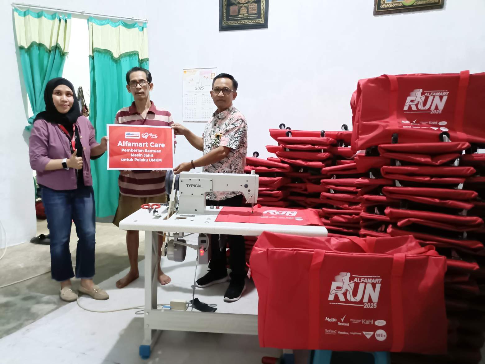 Muchlis menjadi salah satu penjahit yang beruntung diantara penjahit INTAKO lainnya yang mendapat bantuan mesin jahit pada saat menerima order menjahit 4.000 pcs tas jumbo untuk wadah goody bag Alfamart RUN yang akan digelar Bulan Oktober 2025 mendatang.