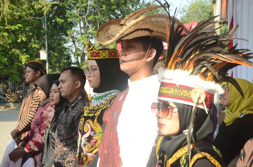 Yakni semua peserta upacara mengenakan baju adat dari berbagai daerah, dari Sabang sampai Merauke.