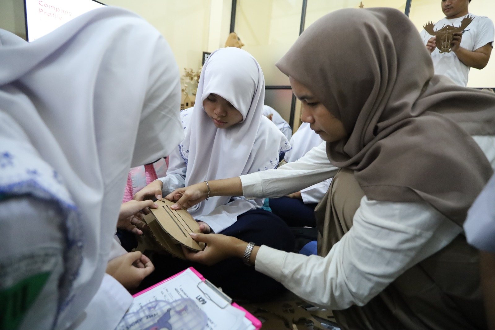 Sementara itu, salah satu siswa, Ingga dari kelas VII Utsman, mengungkapkan kesannya. “Aku senang banget bisa ikut kegiatan ini. Kita bukan cuma belajar tentang kardus, tapi juga bisa bikin karya sendiri. Seru dan bikin aku jadi ingin coba bikin kerajinan sendiri di rumah,” kata Ingga.