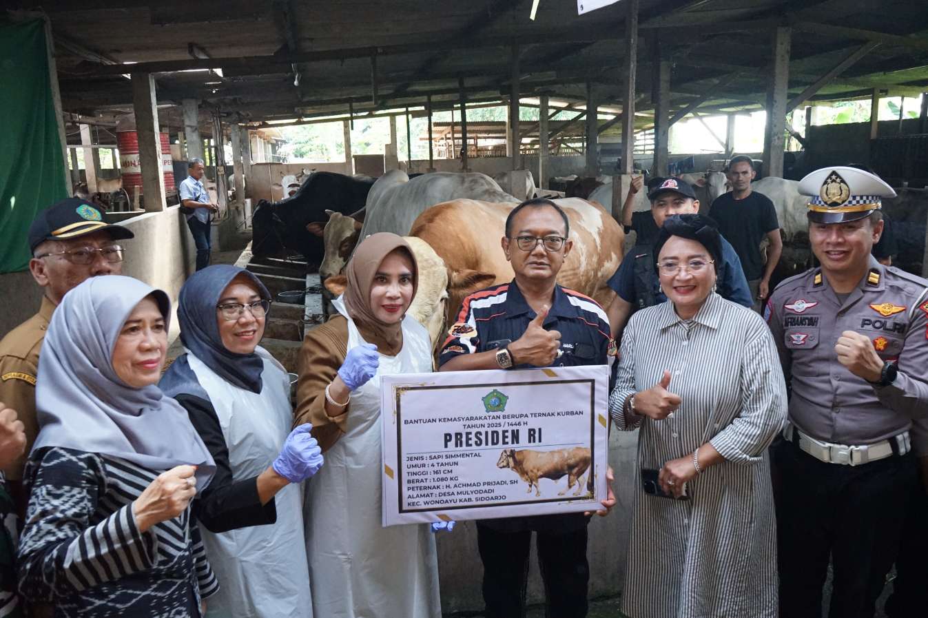 Penyerahan sapi Bantuan Kemasyarakatan (Banmas) diterima langsung oleh Wakil Bupati Sidoarjo Mimik Idayana didampingi oleh Dinas Pangan dan Pertanian Kabupaten Sidoarjo di Desa Mulyodadi Kecamatan Wonoayu, Senin (2/6/2025).
