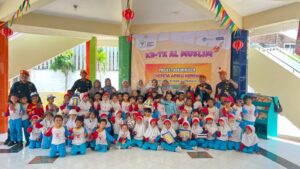 SIDOARJO, Dinamikajatim.id-Siswa KB-TK Al Muslim merayakan Hari Kereta Api bersama sejumlah pegawai PT KAI Daops 8 Surabaya, Jumat (27/8/2024).