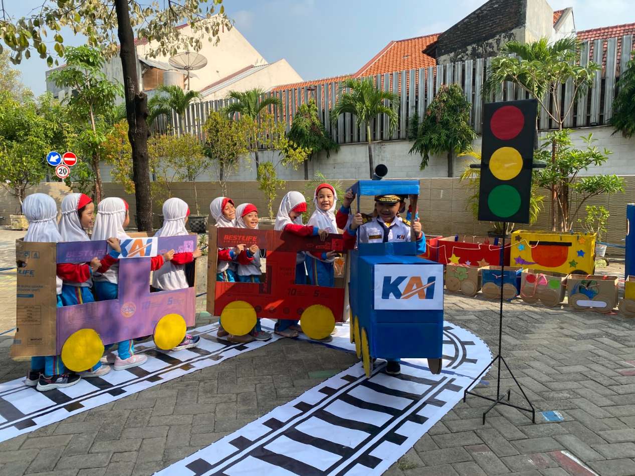 Bagi KB-TK Al Muslim momen peringatan “Hari Kereta Api” adalah sebagai rangkaian dari kegiatan Proyek Penguatan Profil Lulusan TK Al Muslim yaitu Critical and Creative Thinker dan Managing and Collaboration, dimana profil lulusan TK Al Muslim ini selaras dengan dimensi karakter Profil Pelajar Pancasila yaitu Bergotong Royong dan Kreatif, tema “Imajinasi dan Kreativitasku” topik “Kereta Apiku Keren”.