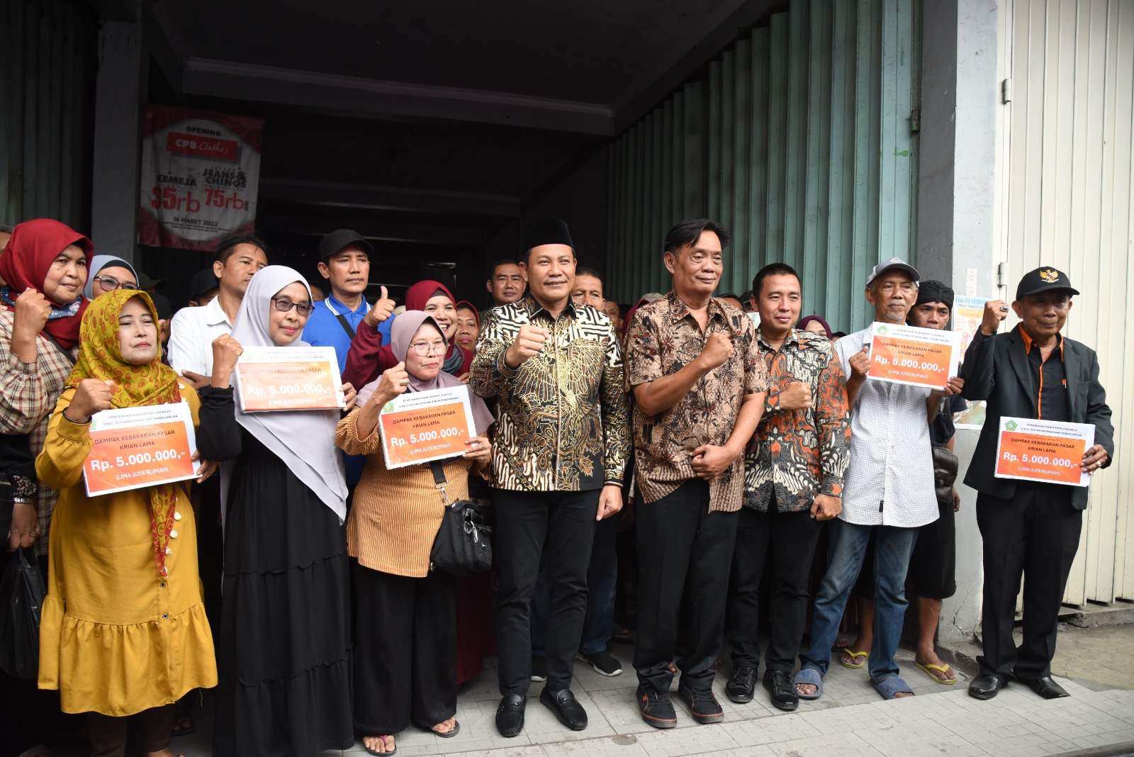 Bantuan berupa uang Rp 5 juta diberikan ke 297 pemilik stan Pasar Krian, yang diserahkan simbolis oleh Plt Bupati Sidoarjo Subandi, di Pasar Krian, Selasa (10/9/2024).