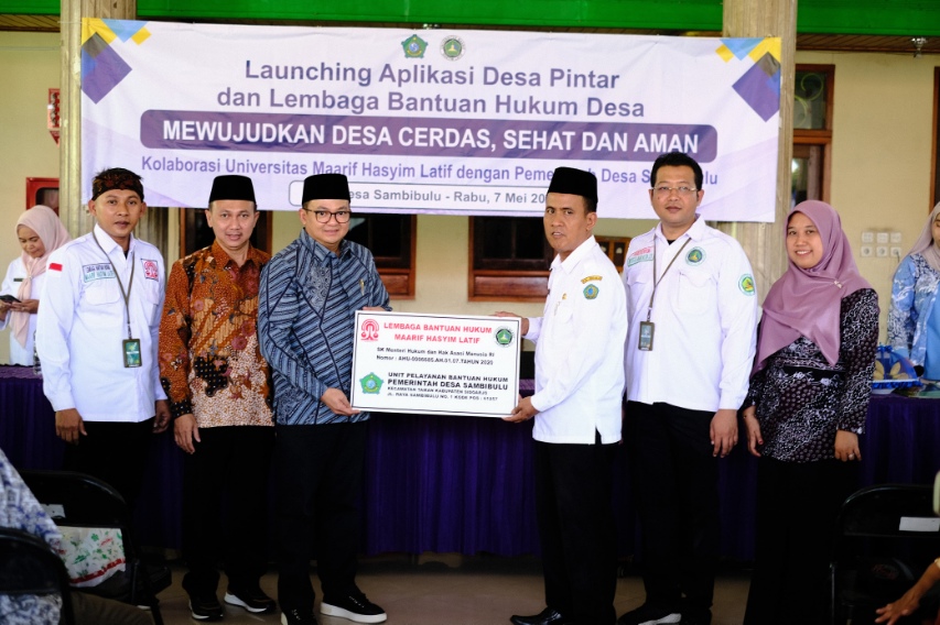 SIDOARJO, Dinamikajatim.id-Universitas Maarif Hasyim Latif (Umaha) Sidoarjo kembali menunjukkan komitmennya sebagai kampus berdampak dengan meluncurkan Program “Desa Cerdas, Aman, dan Sehat berbasis Layanan Bantuan Hukum dan Teknologi Smart Security” di Balai Desa Sambibulu, kecamatan Taman Kabupaten Sidoarjo, Rabu (7/5/2025).